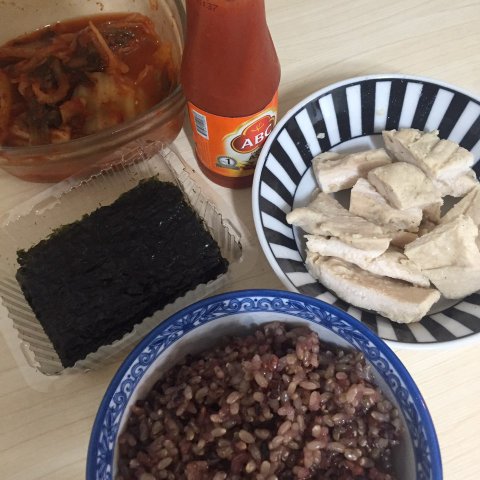 일단 잡곡밥이랑 닭가슴살에 ㅋㅋㅋㅋㅋ 삼발소스 막 뿌려서 김에 싸먹고 ㅋㅋㅋ