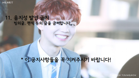 + 점점 팬이 많아지면서 규칙들이 어긋나고 있는 것 같아서 규칙 지켜달라고 만들어왔으니까 꼭 부탁해 이쁜이들❤