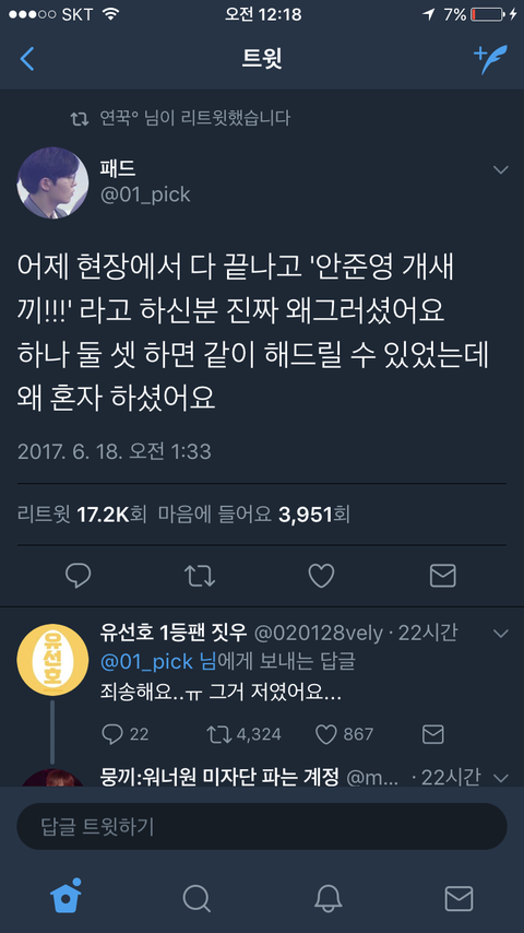 생방 때 암준영 강아지라고 한 사람있음
