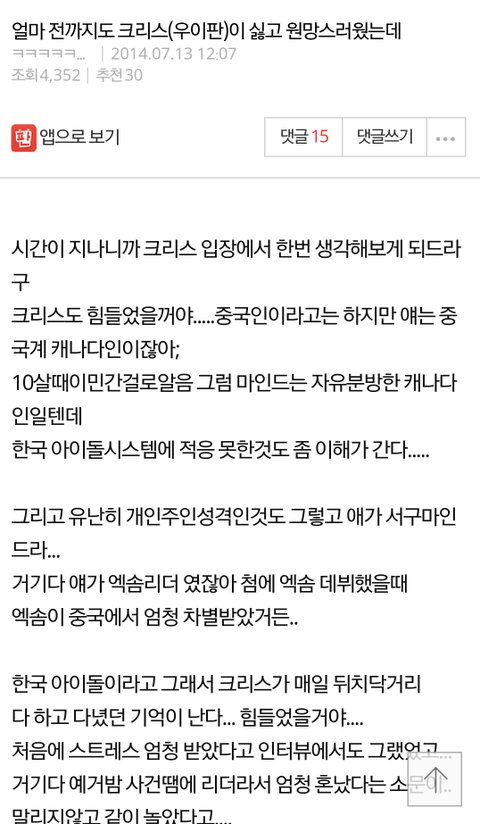 2014년 글인데ㅋㅋㅋㅋㅋ 이거 쓴애 아직 엑소팬이면 흑역사 각
