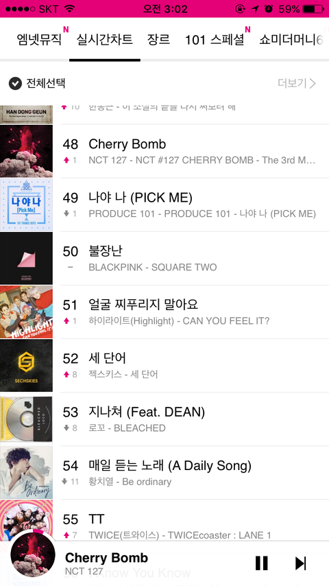 우리 원래 엠/카 차트아웃됐었는데 시즈니들 단합 시작하니까 40위권까지 올라갔어(오늘 팬싸에서 애들이 아닌척하지만 순위 신경쓰고 있는더같아서 울컥한 시즈니들 많을거라 생각해)