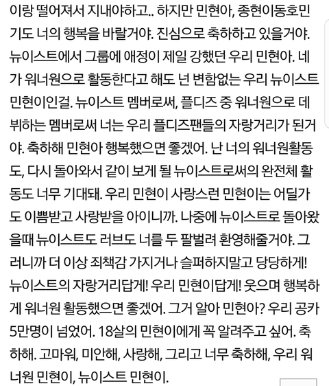 민현이 팬이 여러 연습생한테 쓰는 편진데