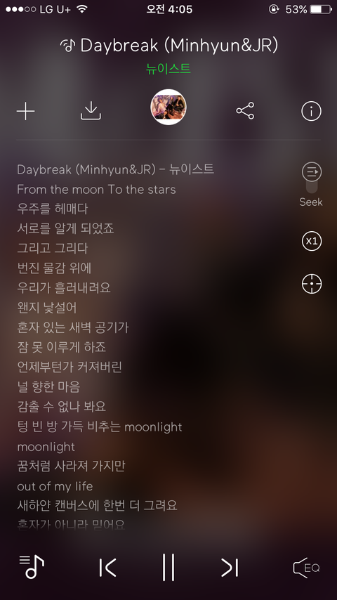 민현1픽이다가 뉴이스트덕질시작해서 멜론에서 노래막막듣고있는데 Daybreak 노래가 제일 내취향이다ㅠㅠㅠ