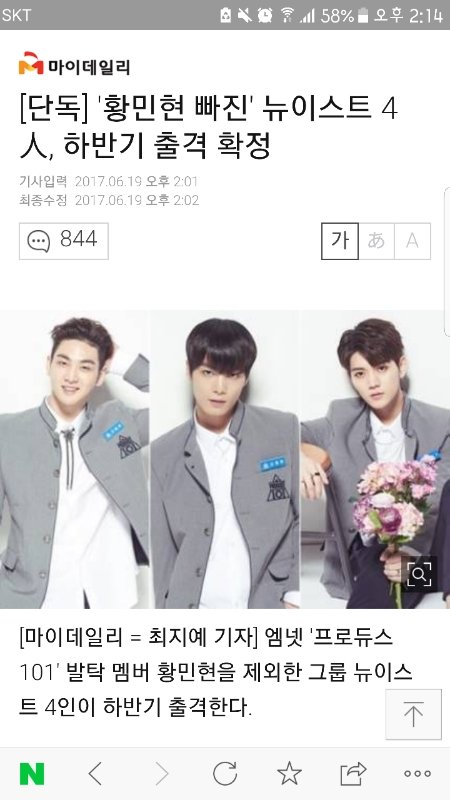 조금전에 실검에 뉴이스트가 떠서 눌러봤더니