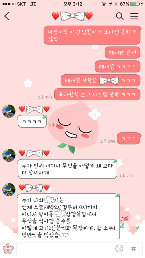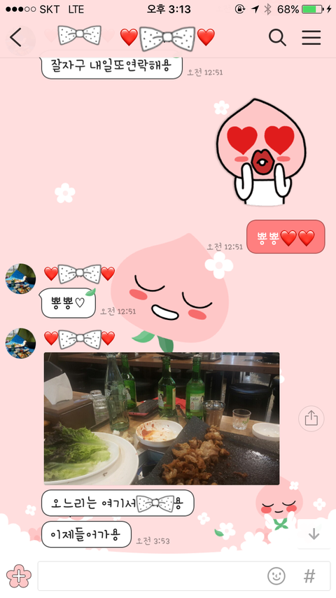 마지막 캡처가 대화 전날 보낸 인증샷입니당 ㅋㅋㅋ