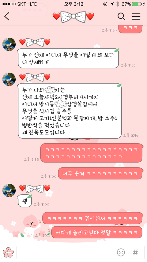 저희가 아무래도 오래 만나다보니 저희만의 대화체가 따로 있습니당 ㅜㅜ