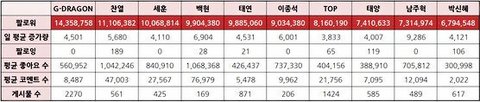 엑소 2,3,4위에 백현이 평균 좋아요수 코멘트수 1위다