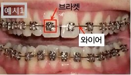 글은 1,2부 (+ @) 로 나뉘어 올릴계획이고,2부는 마무리 되는대로 이번주 이내로 올릴 생각이니교정을 앞둔 수험생들, 학생들을 포함한 모든 분들은 급하게 결정하지 마시고,기다렸다가 2부까지 신중히 다 참고하셔서 몇 만원이 아니라 몇 백만원의 가치가 한순간 선택으로 잘못쓰여지는것을 막을 수 있길 희망합니다.   ---------------------------------------------------------------------------------------------------------------------------------------------------------------------------------------------------------장치 및 교정방식 설명1:먼저 [예시1] 사진을 보면 브라켓은 치아부분에 고정시키고,