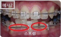 이때 [예시2] 처럼 치아가 이동할 공간의 한계가 있을 때 스프링을 이용하면