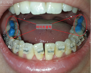 탈부착이 불가한 교정장치는 무조건 '바이트블럭'이 필수적으로 따라오게됩니다.