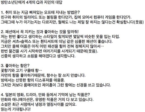Q1. 취미나 지금 빠져있는 것, 오프 때에 시간을 보내는 방법은?