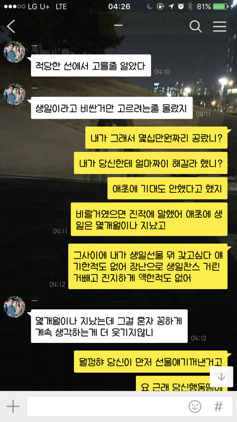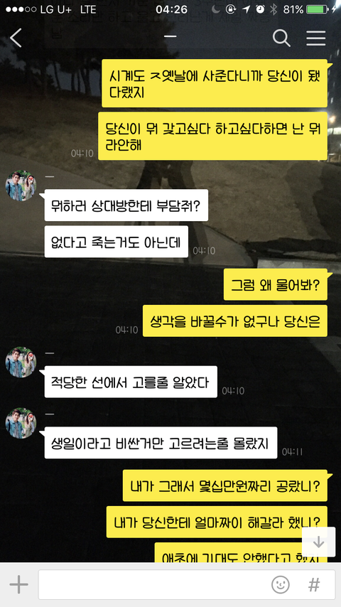 전 딴거바란거 아닌데. 그래도 지 여자친구 생일이면