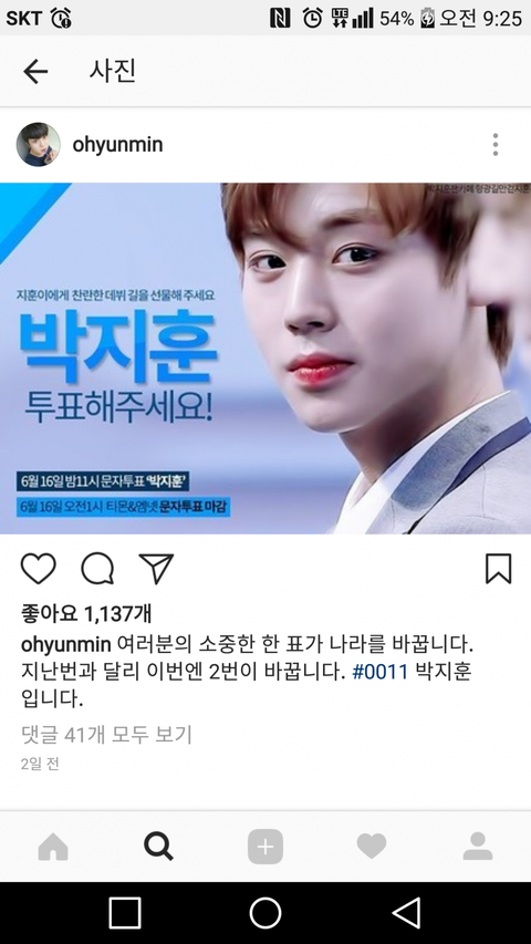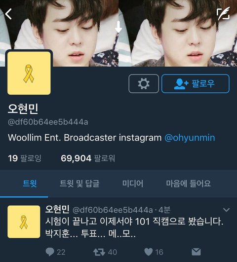 지훈이 팬들아 워너원 팬카페 잘부탁해!!