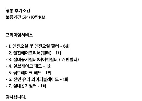 프리미엄서비스라 5년 10만키로 보증이구요.
