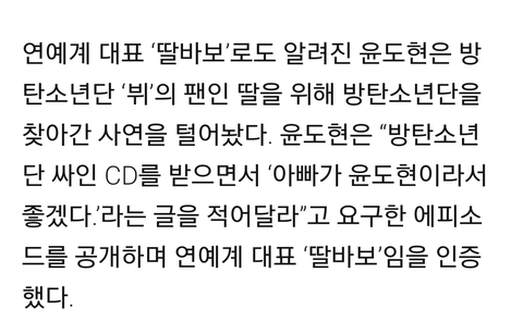 윤1도현님 딸이 태형이팬이라 싸인받아갔대