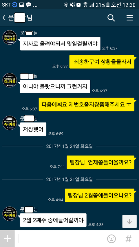 그래서 다시 평택ㅎㅇㅁㅌ쪽 모바일 팀장님한테