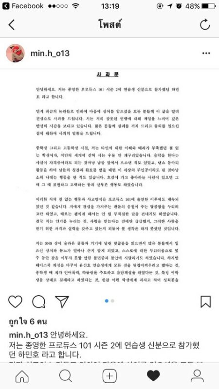 하민호 사과문 뜸