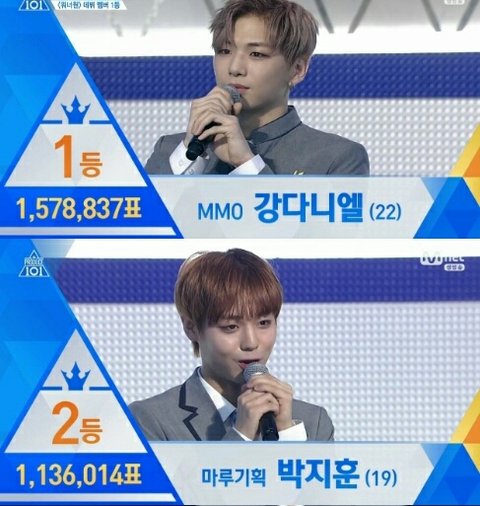 3차 발표식에 와서야 강다니엘과 박지훈의 견고한 투톱이 완성.