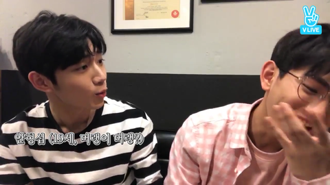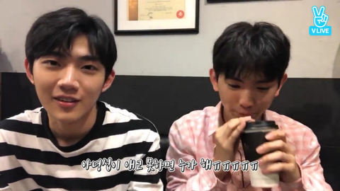 캡쳐본엔 없지만 형섭이 검흰 스트라이트 티 입었다고 자막도 검흰테두리고 의웅이는 핑크색이라고 핑흰 테두리였음ㅠ 섬세쩔어