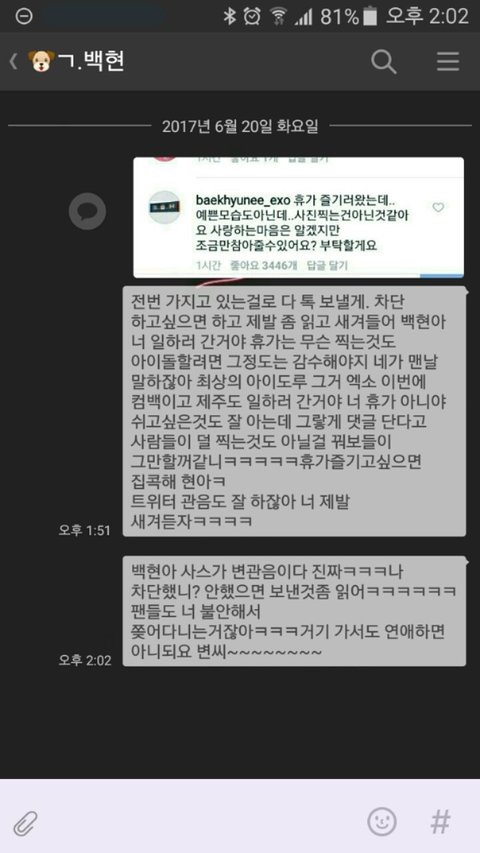 변백현 톡 겁나 잘 읽어ㅋㅋㅋ