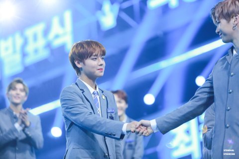 박지훈 강다니엘 서로 껴안고 나서 박지훈 안앉고 서있는거