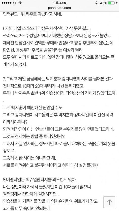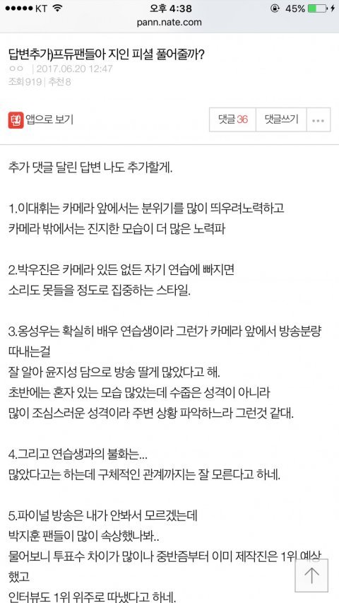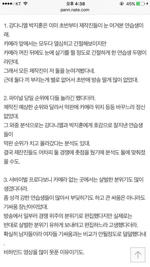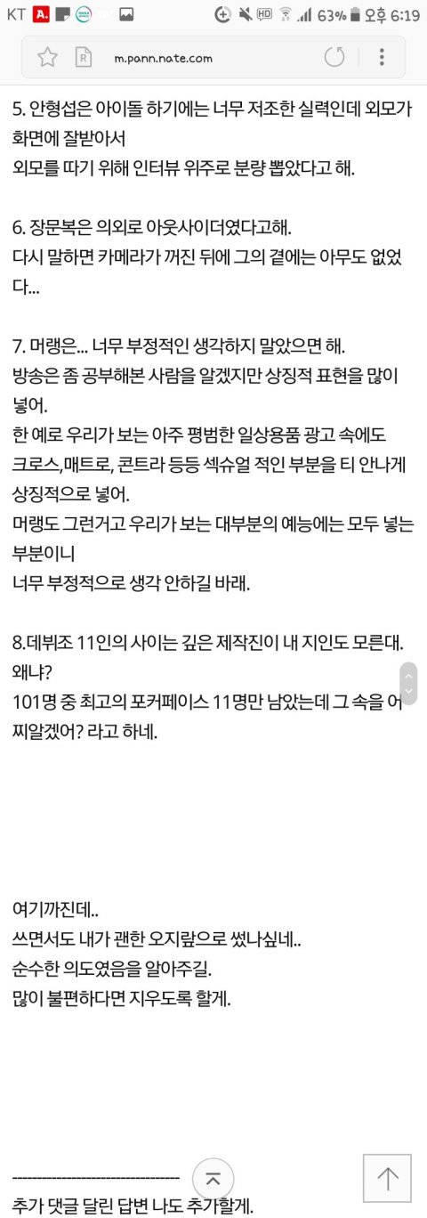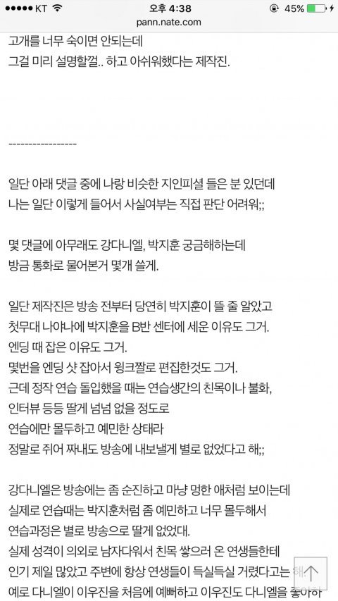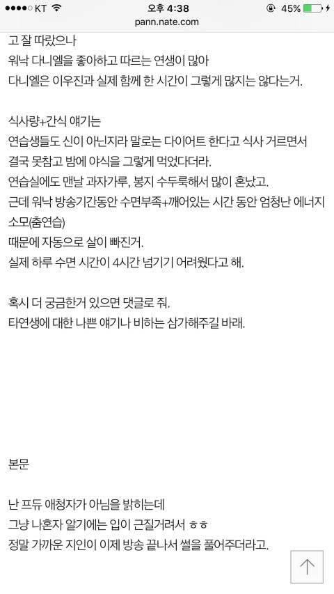 아까 올라왔다가 삭제된 프듀 지인피셜 글 캡쳐본 올린다