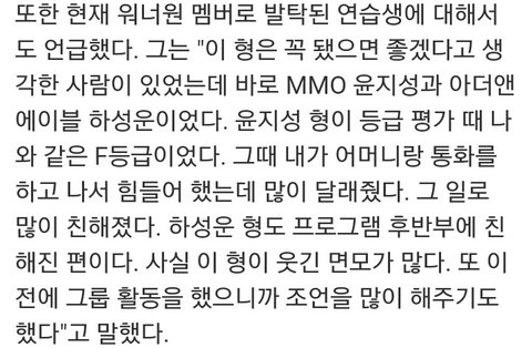 프듀 한 연생이 지성씨랑 구름이 워너원 들어가길 바랬대