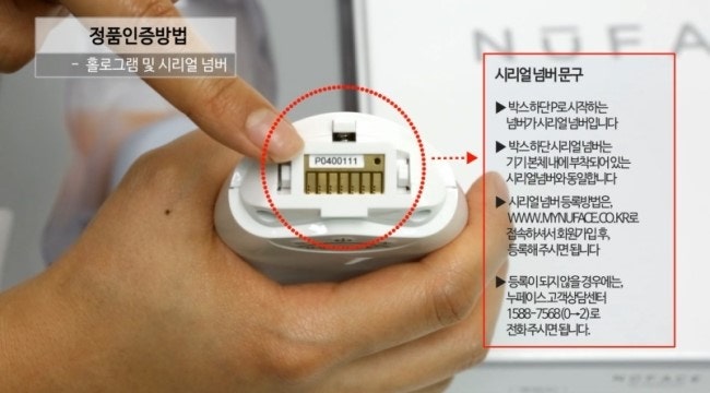 정품 인증 홀로그램 마크와 기기 헤드 부분의 시리얼 넘버 문구를 대조하면 된다고 해요~^^