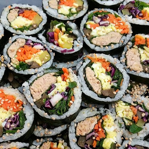 급하게 말아 옆구리 다 터진 김밥 ㅠㅠ