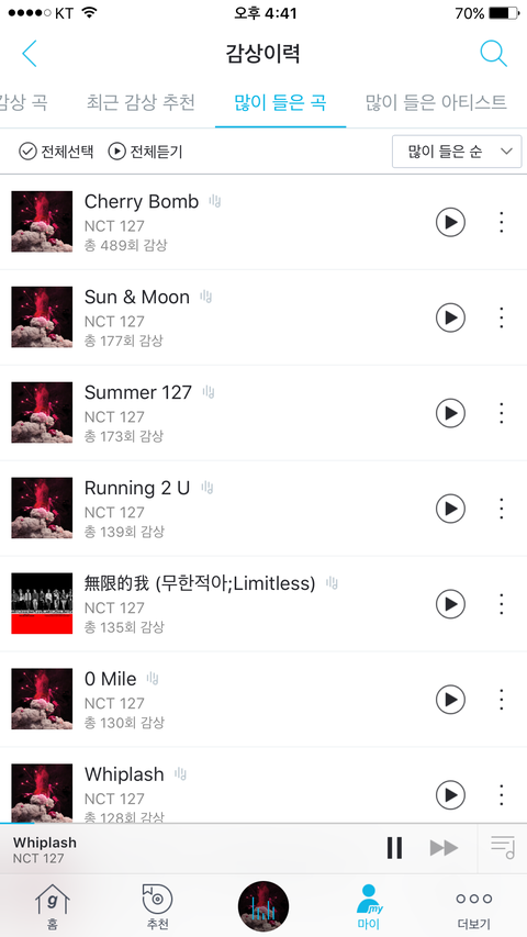 난 그냥 시간날때마다 스밍돌렸는데 벌써 489번이나 들었어 ㅋㅋㅋㅋㅋ