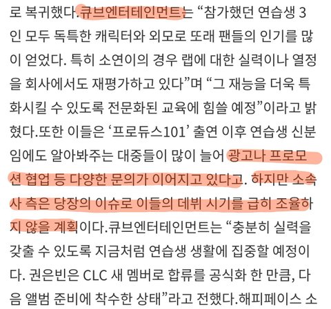 큡 프듀시즌1 공식입장