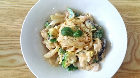 4. 까르보나라(브로콜리,버섯,새우 다때려넣은ㅋㅋㅋ)