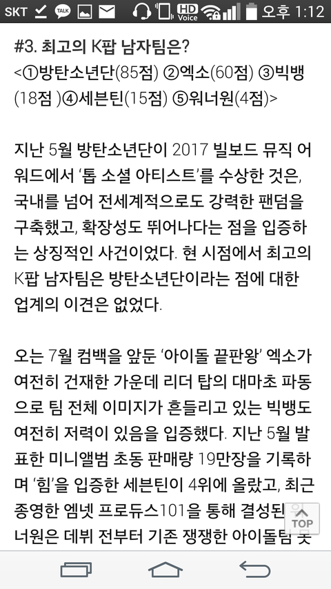 최고의 k팝 남자팀은?