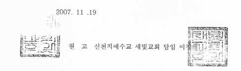 그 당시 새빛교회 전도사로 재직했던 조현섭 전도사님의 확인서 입니다.
