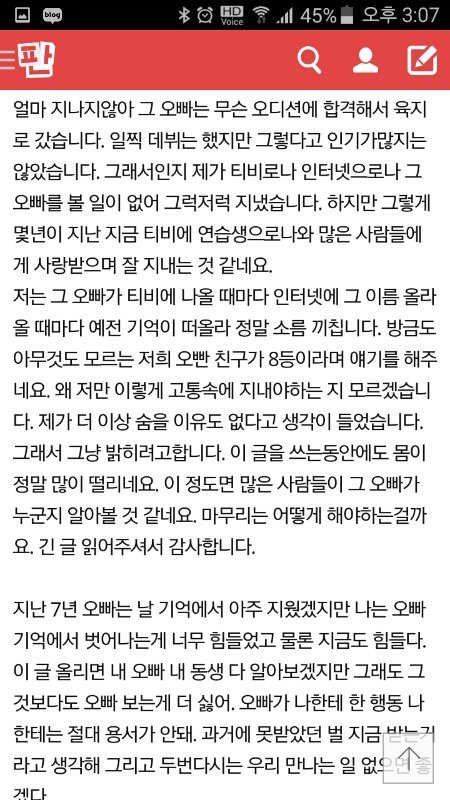 한창 프듀 하고있을때인데 저런글 올라와서 진짠가 했는데 댓글에 다 피디엪따서 넘긴다고 그러고 뜨니까 견제한다고 그러고 저 글쓴이 진짜 욕했거든 근데 나는 뭔가 쎄해서 캡쳐해놨는데 지금은 이 글 없더라