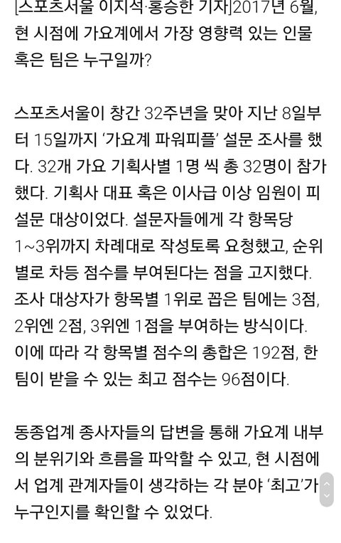 이거 일반인 투표 아니고 슷폿츠서울 창간 32년기념 슷폿츠서울에서 이사진급 되는사람들이 투표한거임 즉 이말은 연말 석아대 심사위원 될수 있는 사람들이 이투표 한거란 말임