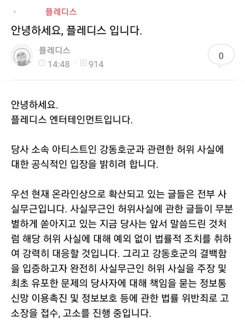 가장 의구심이 든다고 지적받은 부분에 대한 가장 명확한 해명이 담긴 공식입장