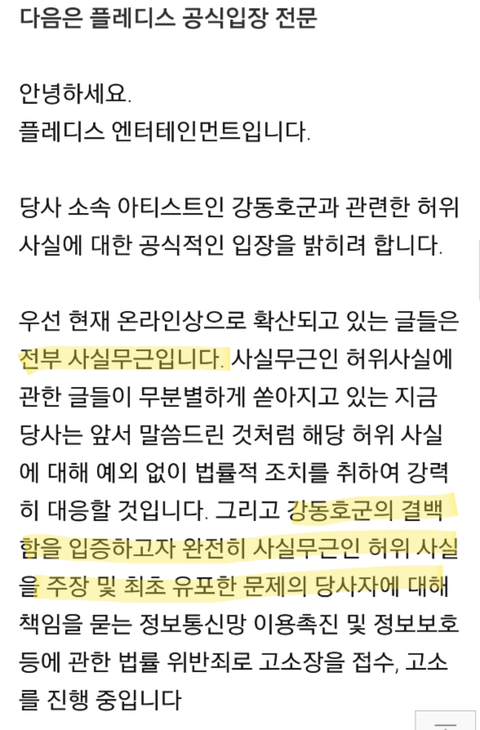 오늘 플레디스가 올린 공식입장은 기사도 몇개 안뜨고 톡선에 하나 올라가지도 않네..