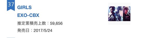 2017년 상반기 오리콘 랭킹에 첸백시!!