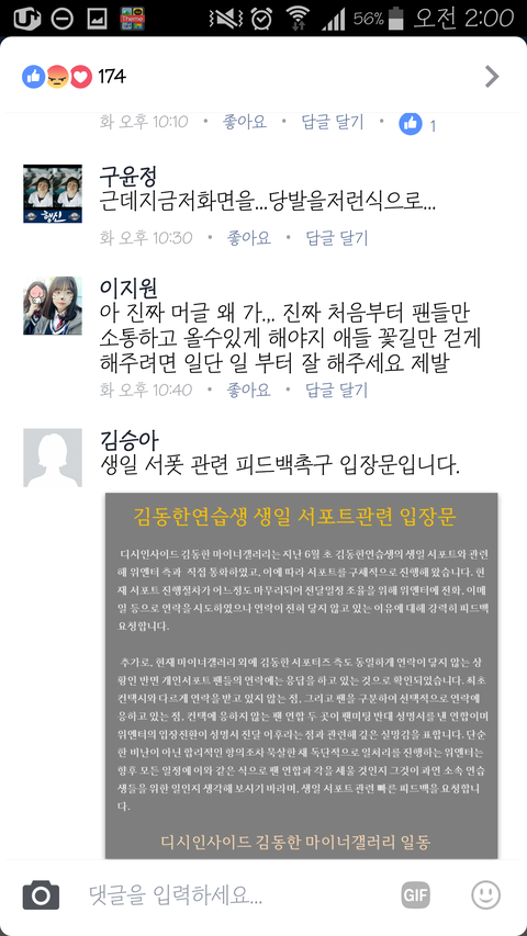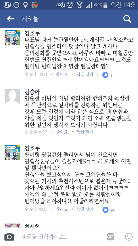 (예전에 소속사 대표가 연습생들을 아들 딸처럼 엄청 아낀다고 소문났던 곳임)