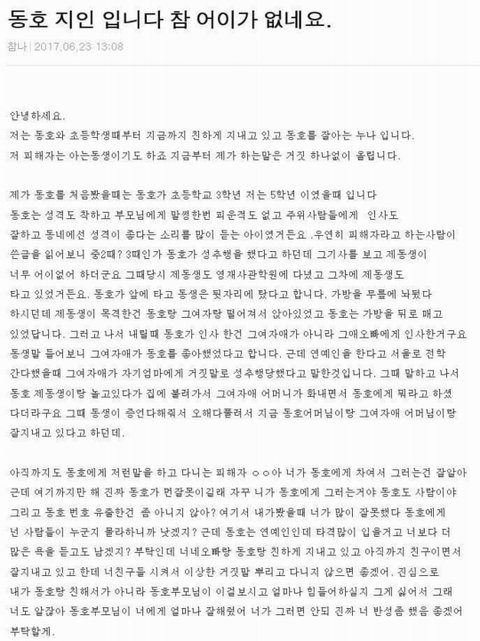 첫번째로, 이게 제3자인 동호 지인의 입장임. 우선 정리하자면 _