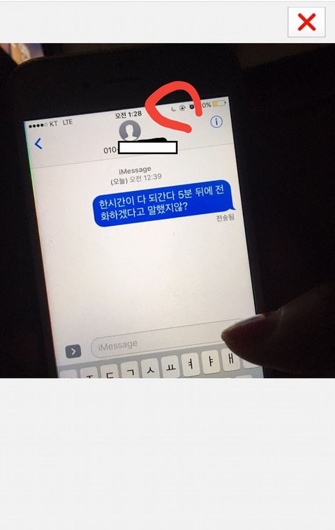 오른쪽위를보면 '방해금지모드'가 설치돼있는데, 방해금지모드는 알림만 안오는것이지 문자는 언제든지 받을 수 있음. 그러니 이거가지고 태클거는것은 없길바람