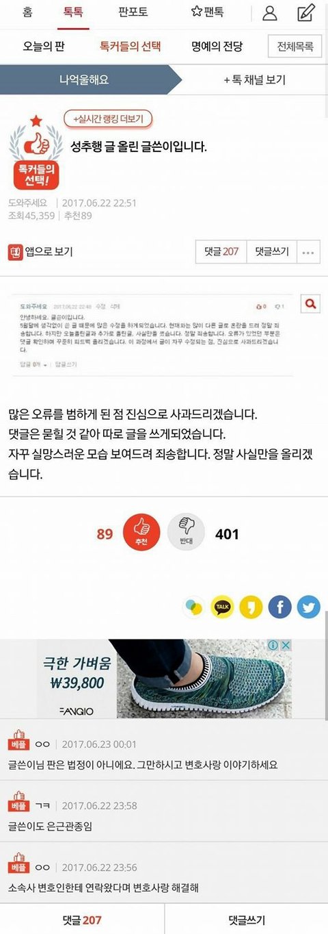 이 글이 큰 여파는 없겠지만 빠른시일내로 경찰조사 받고 입장이 밝혀졌음 좋겠음 그럼 난 이제 자러감 졸려뒤지것네 에이씨