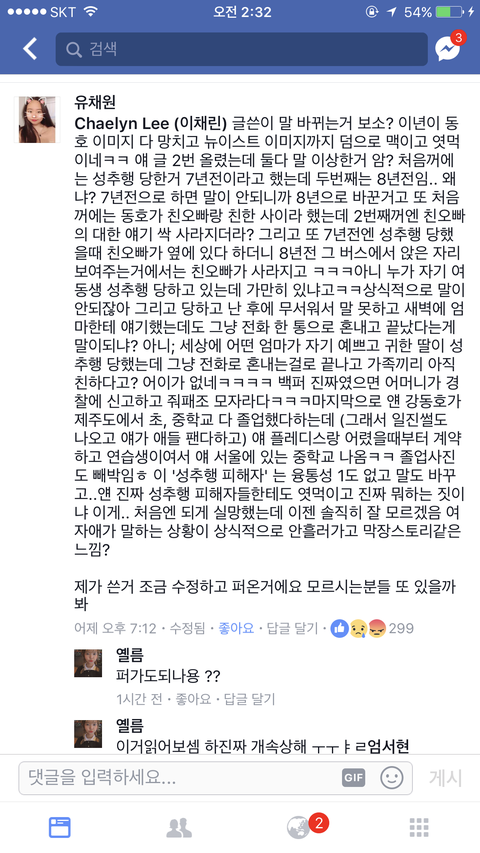 + 여기서 한가지 더, 기사 댓글중에서 '어떻게 저 지인은 저렇게 자세하게 하나하나 다 알고 글을 쓴거지?' 라는 문제점을 제시했었음 근데 내 생각엔 당연히 동호는 중2? 중1정도였고 그 어린아이에게 '성추행' 이라는 혐의를 가져다준것은 꽤 큰 충격이었을거 라고봄. 그러다 보니 옆에있던 지인의동생이 증언해주고 오해풀어줘서 가라앉힌 사건이기때문에 당연히 자세하고 하나하나 기억할 수 밖에 없다고 생각함. 그러니 이 지인의 말이 거짓말이라고만 생각하지 않길바람.