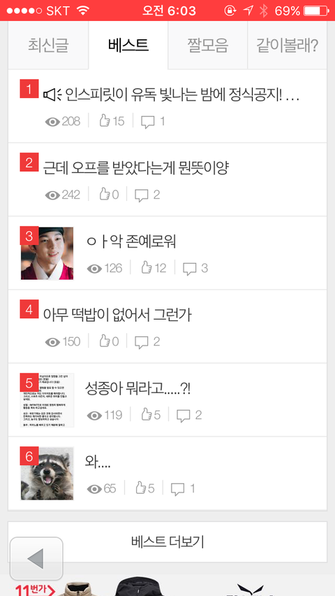 베스트 6위까지 밖에 읍다요