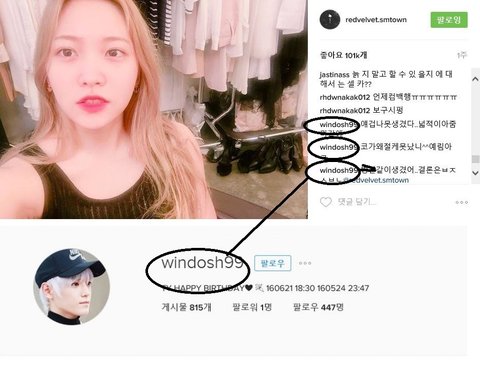 예리 인스타가서 악플 쓰는 엔시티 태용팬