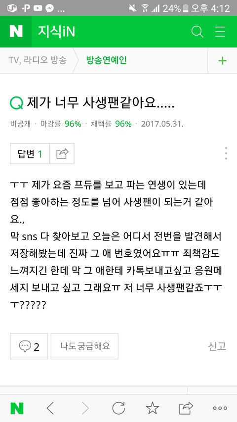 제가너무 사생같아요..(프듀)지식인 이거봤냐