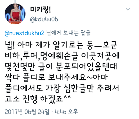 이것뿐만이아니라 별말 별욕들이 인터넷상에 떠돌고있겠지 다 캡쳐해서 플디로 다보내자 제발 제발