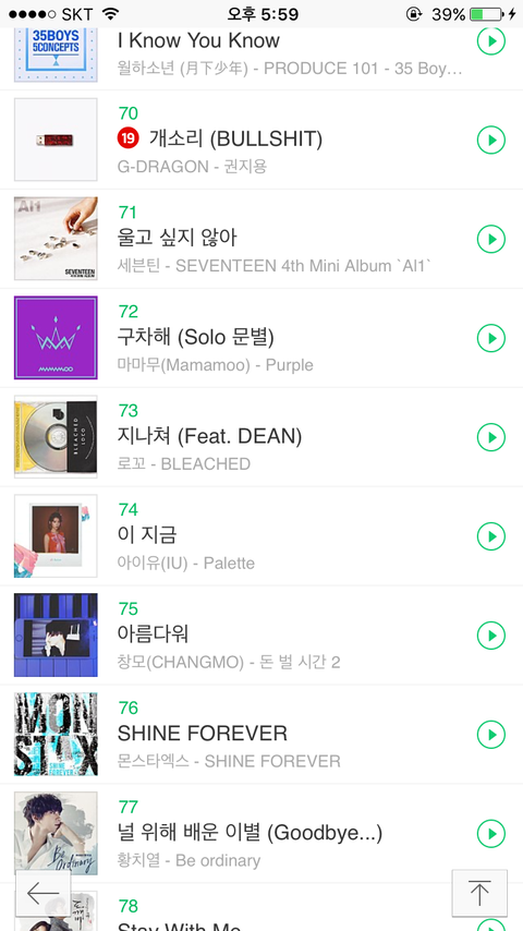 차트 위기야ㅜㅜㅜ 참고로 나는 스밍권 구입 못하게 하는 집안이야...그래서 뮤비랑 투표밖에 못해