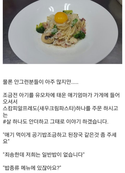 반값해봤자 비싸야 오천원정도 아님?정말 거지년이구나ㅠㅠ 지 주둥이에 파스타 처넣을돈은 안아깝고 애기 리조또는 아까워서 구걸이라니